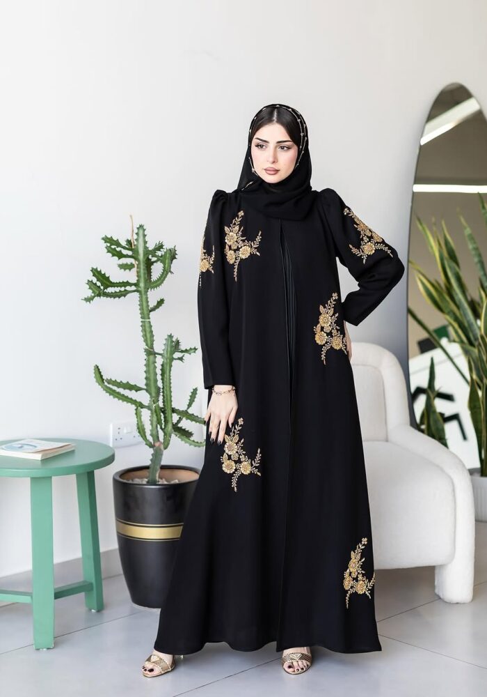 عبايه العيد ملكيه نص كلوش تطريز ذهبي كتف كسرات
