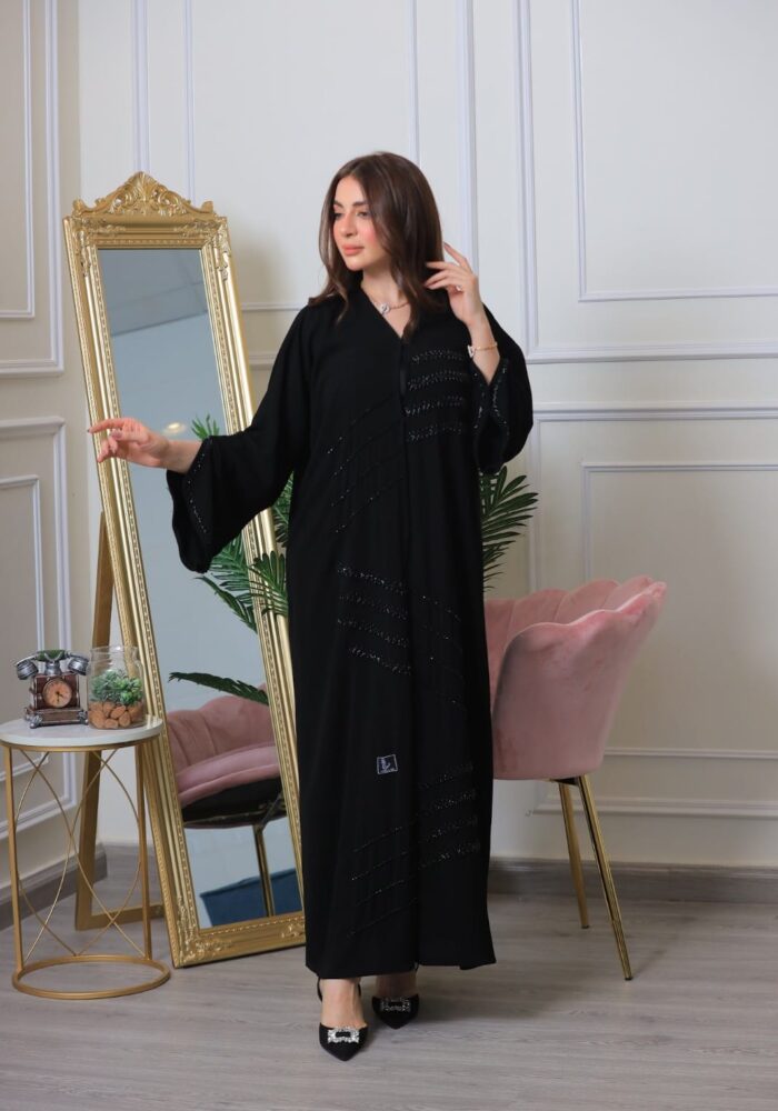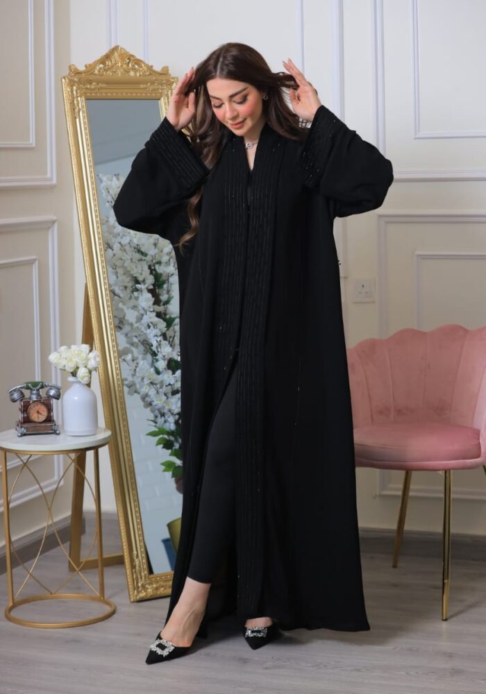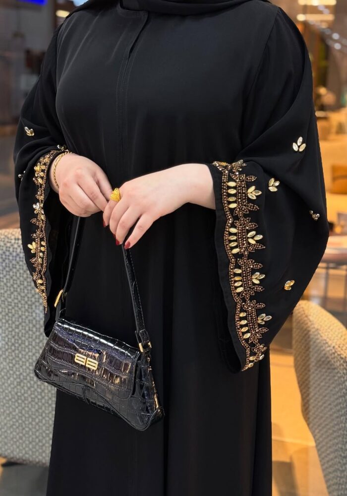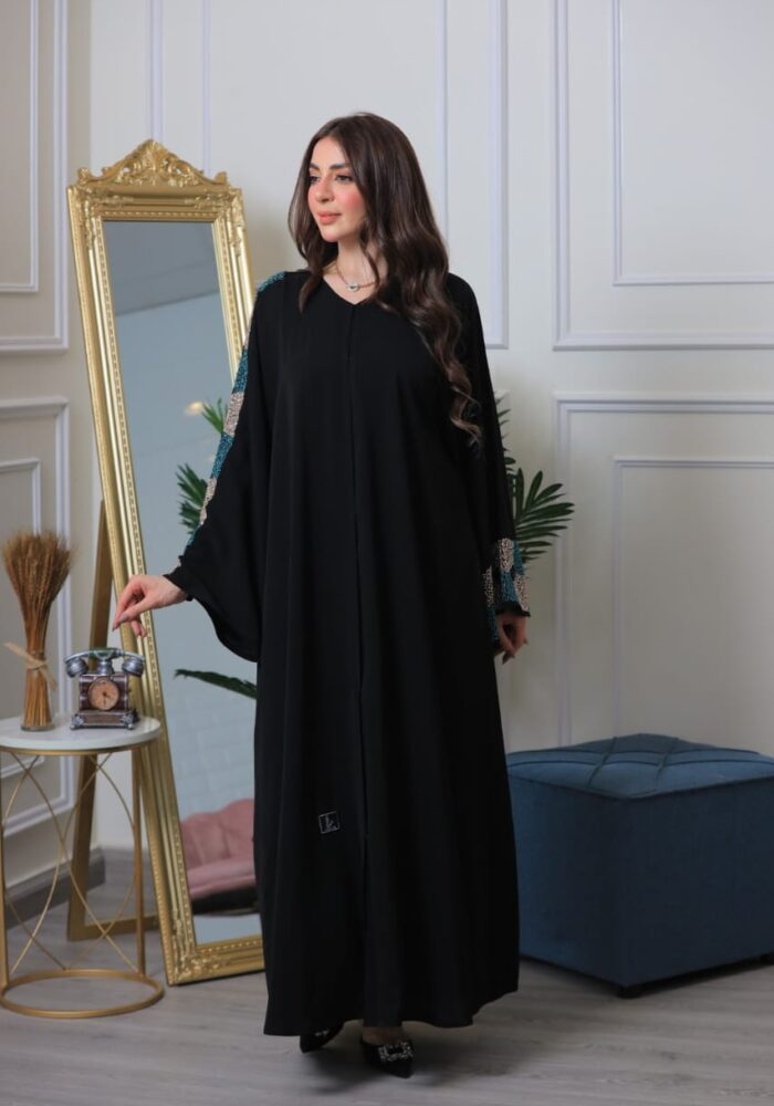 عبايه ملكي مطرز كم مقفله نص كلوش