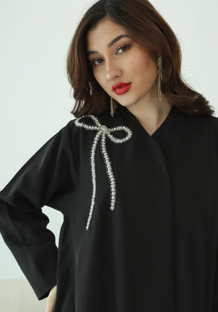 عبايه العيد لف أنيقه في اللبس تطريز فيونكه كتف كم ساده